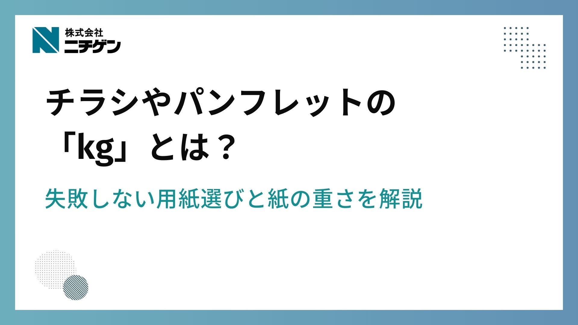 印刷通販などの注文画面で必ず目にする「kg」という表記。結論からいうと、印刷業界では紙の厚さを「重さ(キログラム)」で表現するのが一般的なルールです。一見すると初心者には分かりづらい単位ですが、この仕組みを正しく理解することが、パンフレット制作における第一歩となります。